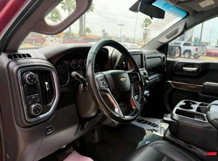 This striking red truck features a bold front grille and sleek chrome accents, embodying strength and elegance. With its spacious interior and advanced technology, the Silverado is built for both work and play, making it an ideal choice for any adventure. Whether you’re towing heavy loads or cruising through the city, this truck delivers unparalleled performance and comfort.