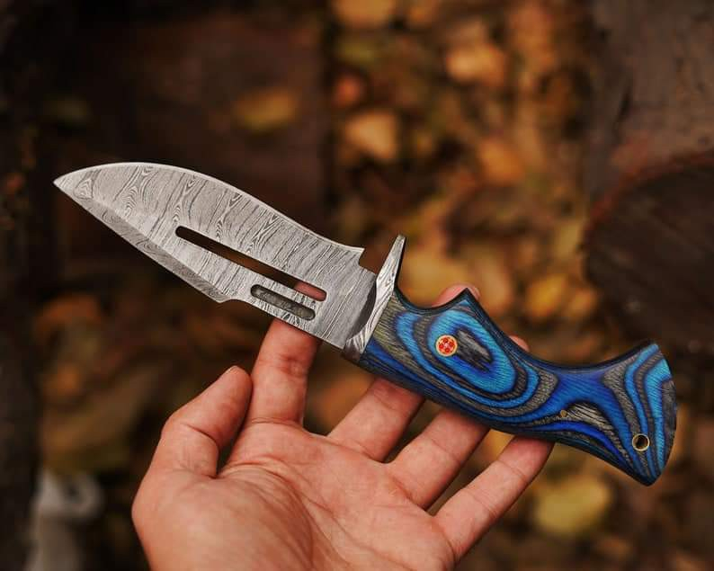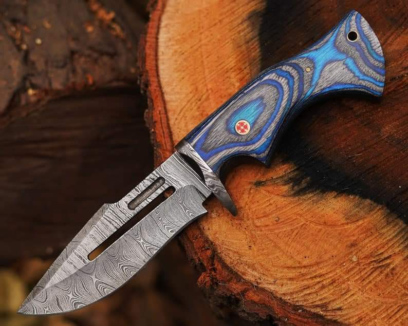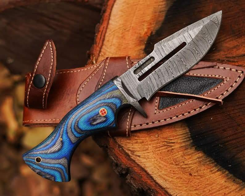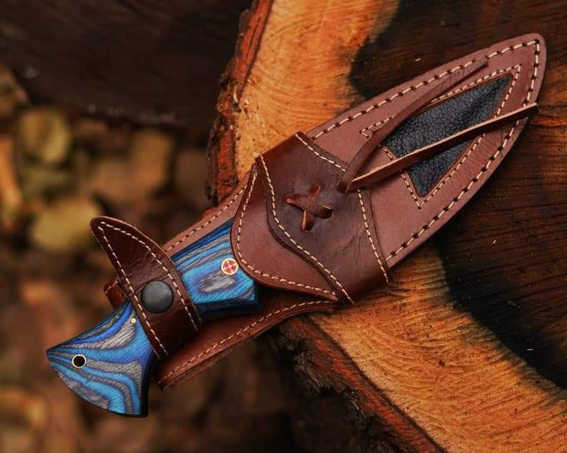 Custom handmade Damascus steel hunting knife with pure leather sheath Sale...