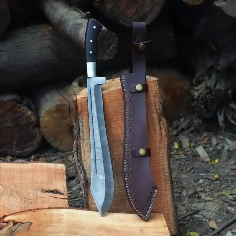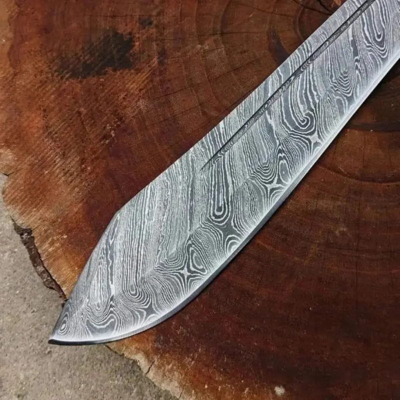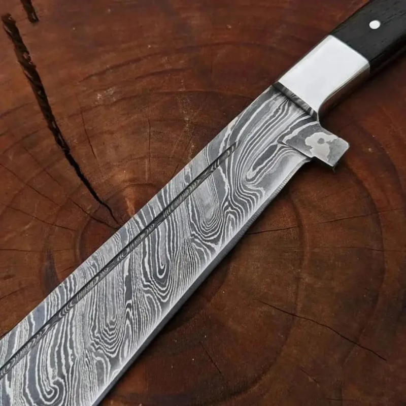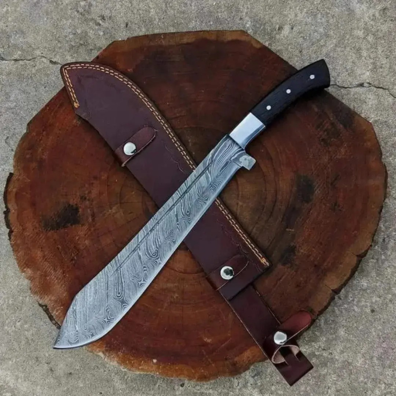 Custom Handmade Damascus Steel Machete Knife With Pure Leather Sheath For Sale...