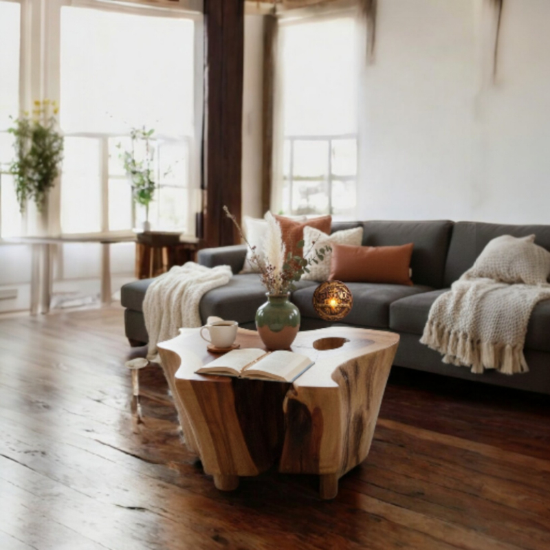 Meja akar kayu alami desain organik artistik, dibuat dari satu akar pohon utuh dan dikerjakan secara handmade. Setiap produk unik (tidak ada yang sama) dengan serat dan bentuk alami kayu.
