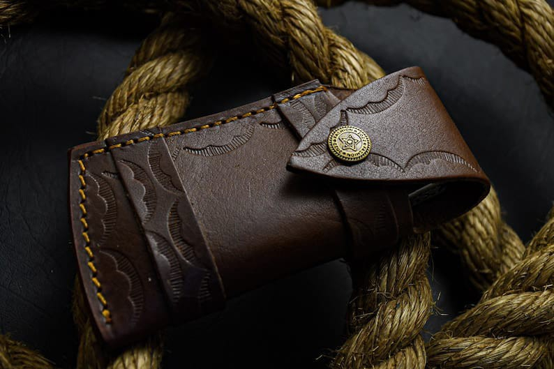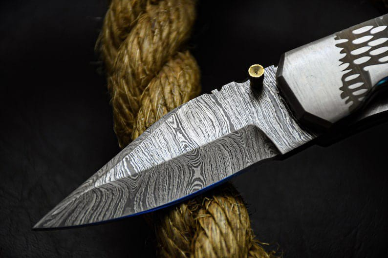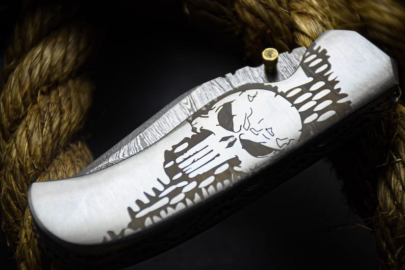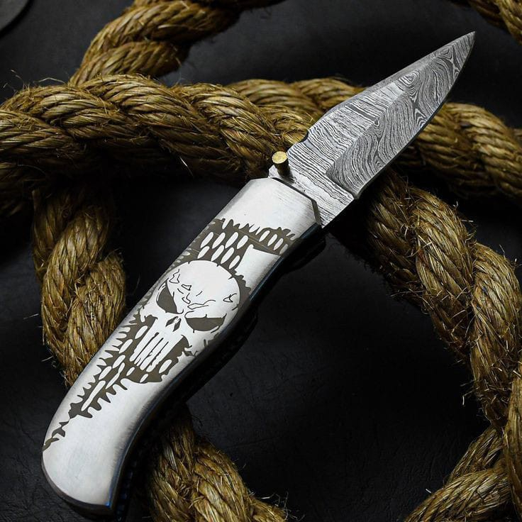 Custom Handmade Damascus Steel Pocket Knife With Pure Leather Sheath For Sale...