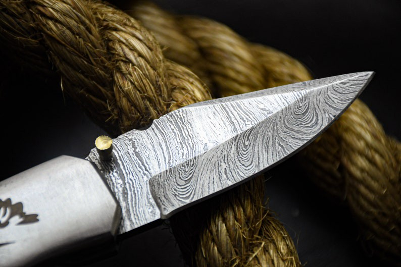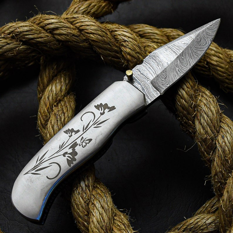 Custom Handmade Damascus Steel Pocket Knife With Pure Leather Sheath For Sale...